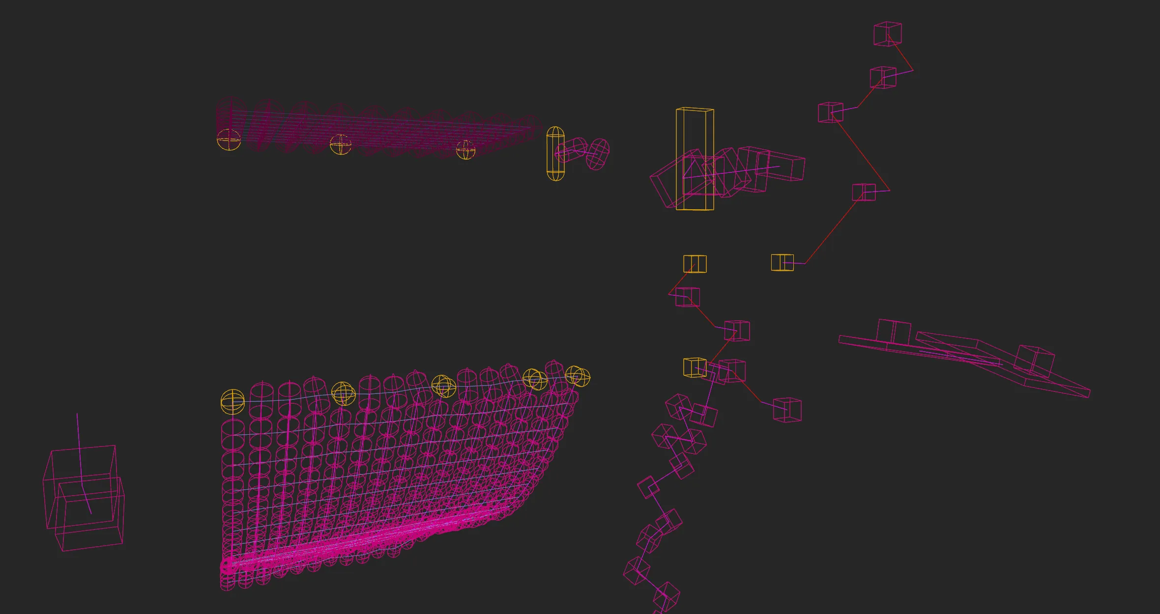 bevy_rapier插件同时有一个调试渲染器(要么是debug-render-2d,要么是debug-render-3d)来帮助可视化物理引擎所看到的内容。这可以帮助修复一些漏洞,像碰撞箱没有合适地与你的图形表示对齐。调试渲染器会被启用于: